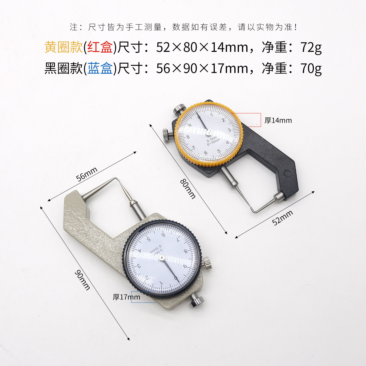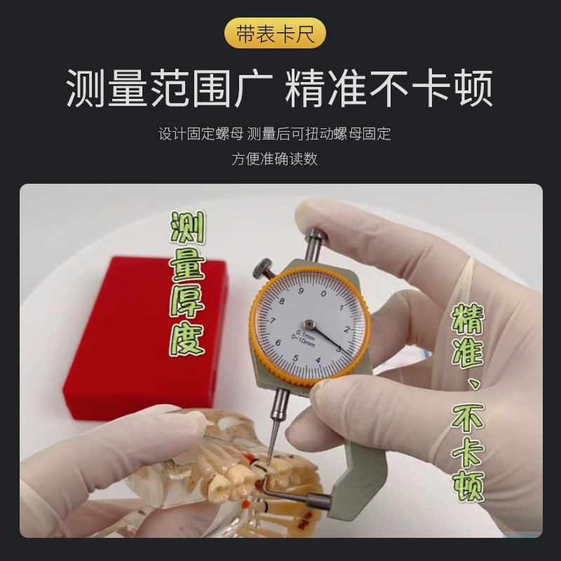 牙科口腔带表卡尺测厚表测量尺孔雀卡尺牙齿金属内冠厚度0 10mm