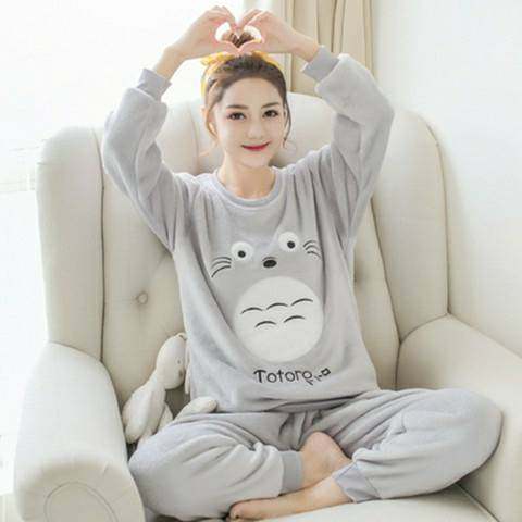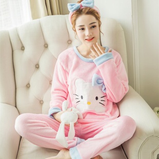 珊瑚绒睡衣女秋冬季 套头保暖法兰绒冬天加绒加厚可外穿家居服套装