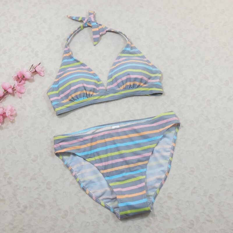 F399内单泳衣女背心条纹性感三角系绳度假沙滩比基尼泳装 L号