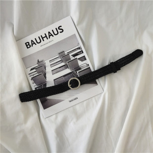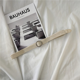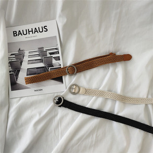 皮带女简约圆型扣百搭韩国编织复古bf风手工编织针扣个性 潮腰带女