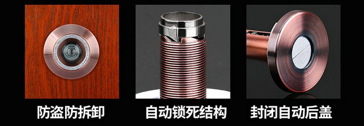 阿海防盗门猫眼门镜防卸防撬防拧防窥红古色锌合金金属高清镜头