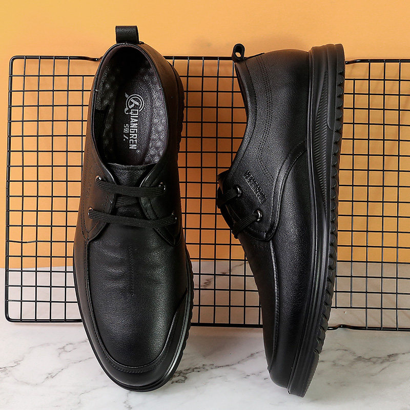 男真皮冬季 加绒厚底商务休闲皮鞋 中老年爸爸鞋 男鞋 大码 老人头皮鞋