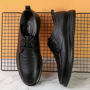 软底爸爸鞋 老人头皮鞋 真皮加绒商务男鞋 男士 子 男秋冬中年休闲皮鞋