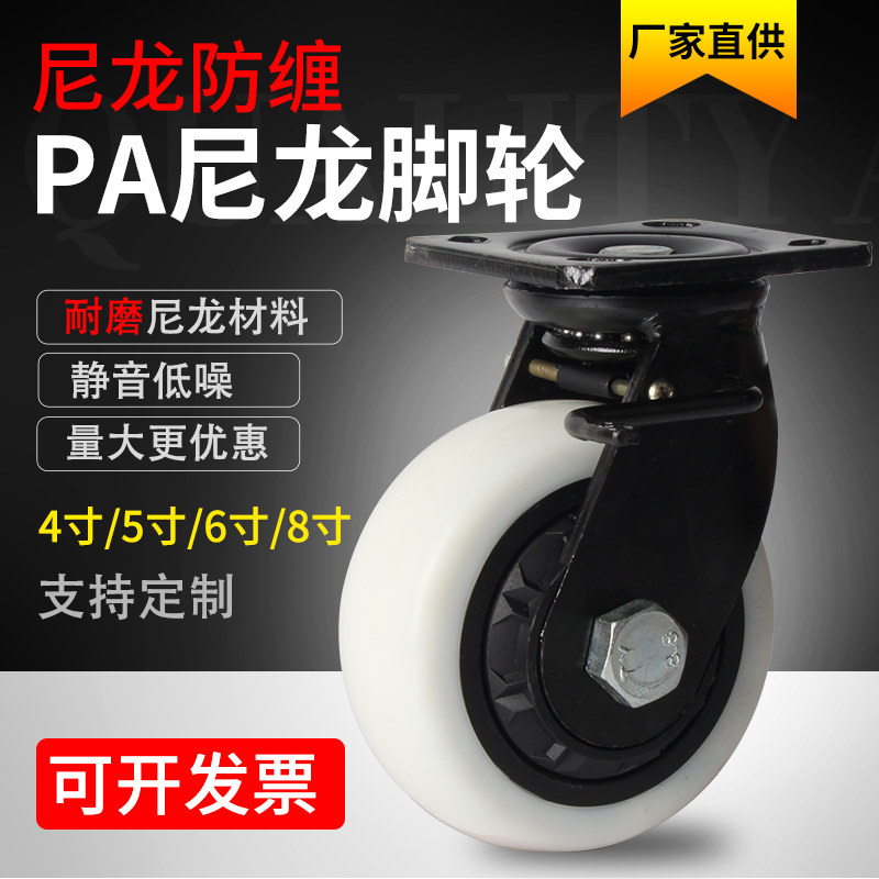 万向轮轮子重型3寸4寸5寸小推车轱辘拉车定向轮尼龙轮带刹车脚轮