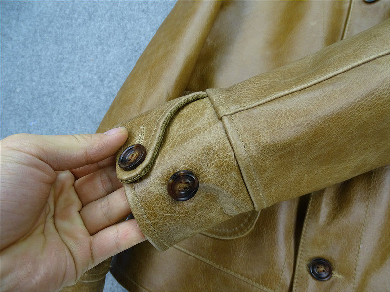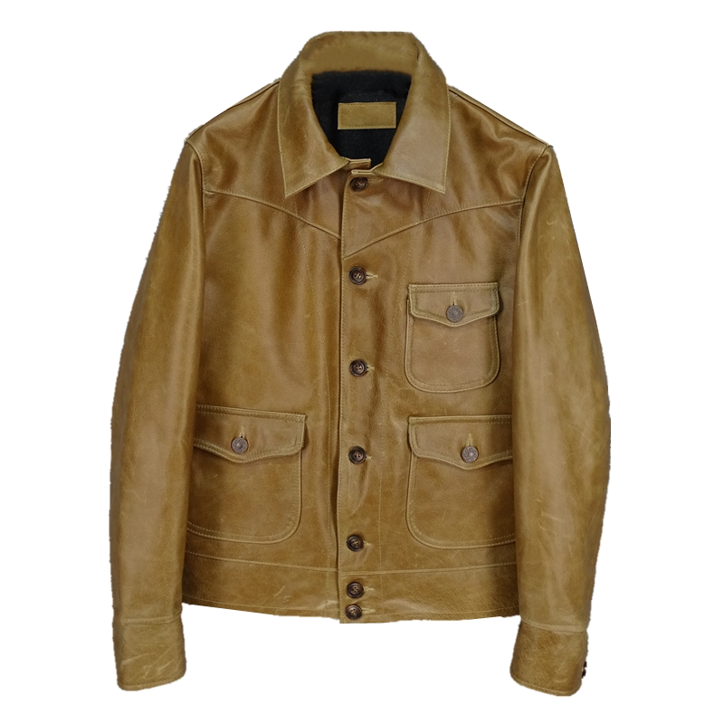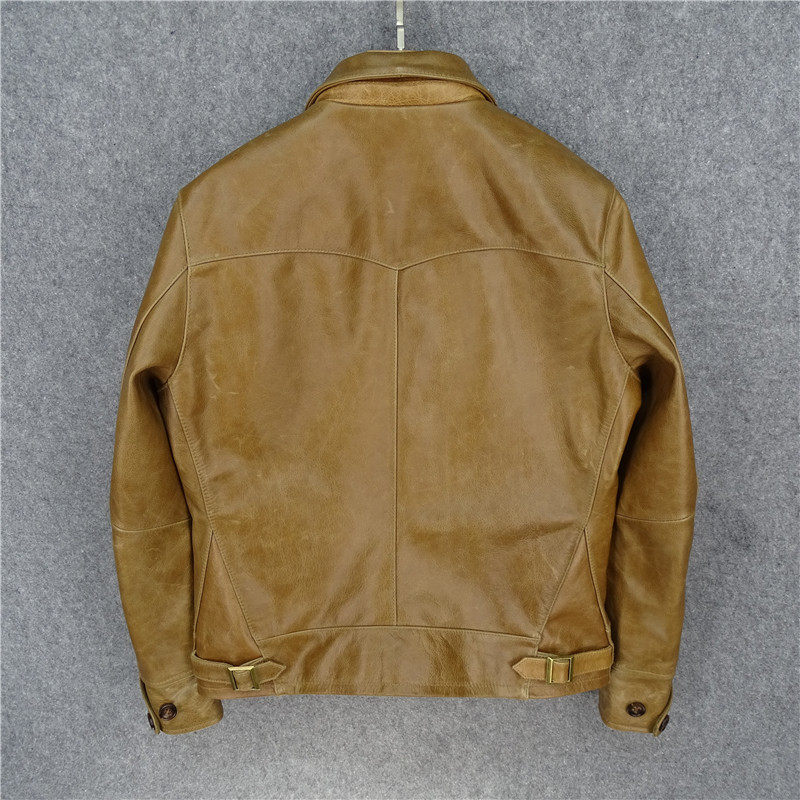 重磅新品 复古做旧头层牛皮真皮皮衣男蜡染变色浅棕男夹克 美式