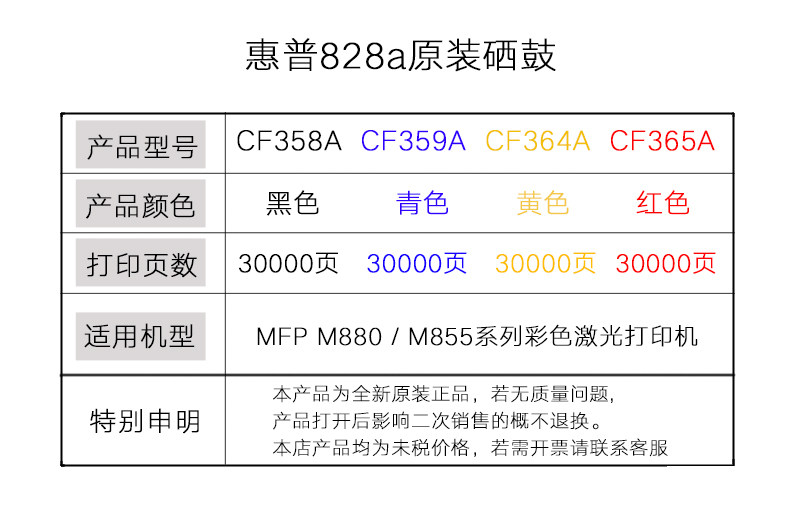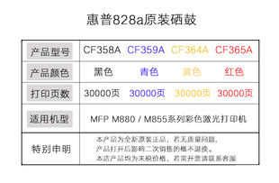 M855dn M855xh CF359A青色 惠普原装 CF365A红色 M880z CF364A黄色 CF310粉盒 828A黑色硒鼓CF358A