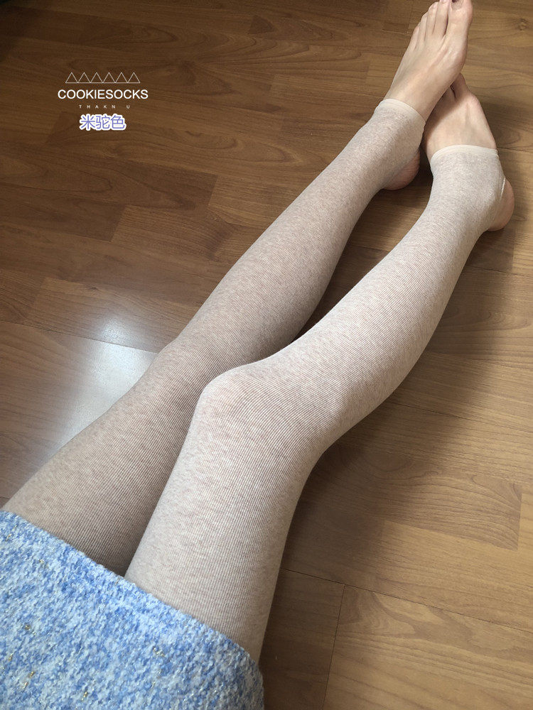 秋冬600D燕麦色微压显瘦连裤 棉竖条蜜桃臀瘦腿踩脚九分打底袜 袜