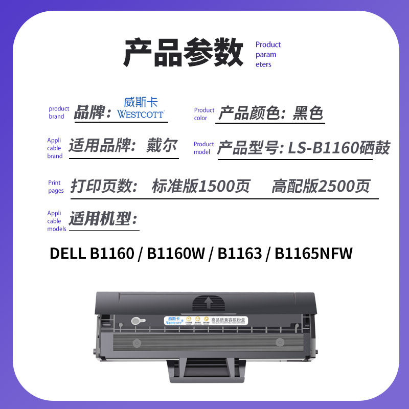 B1160墨盒易加粉硒鼓Dell 戴尔B1163W 激光打印机复印机碳粉盒 B116X硒鼓 威斯卡适用戴尔B1165nfw硒鼓