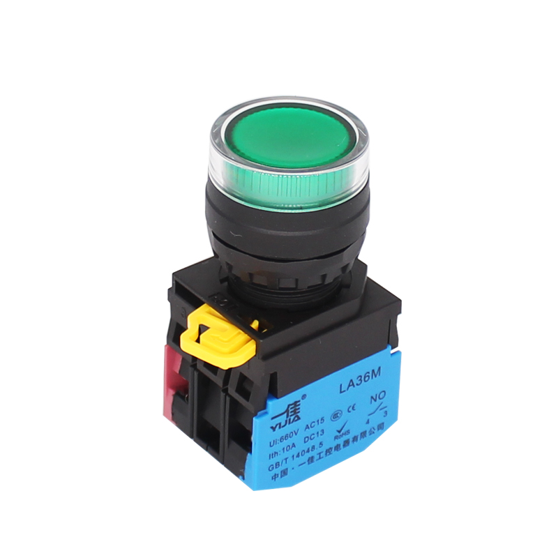 按钮开关按压式 11bn自锁电源平头启动停止圆形点动ZS 自复位la38