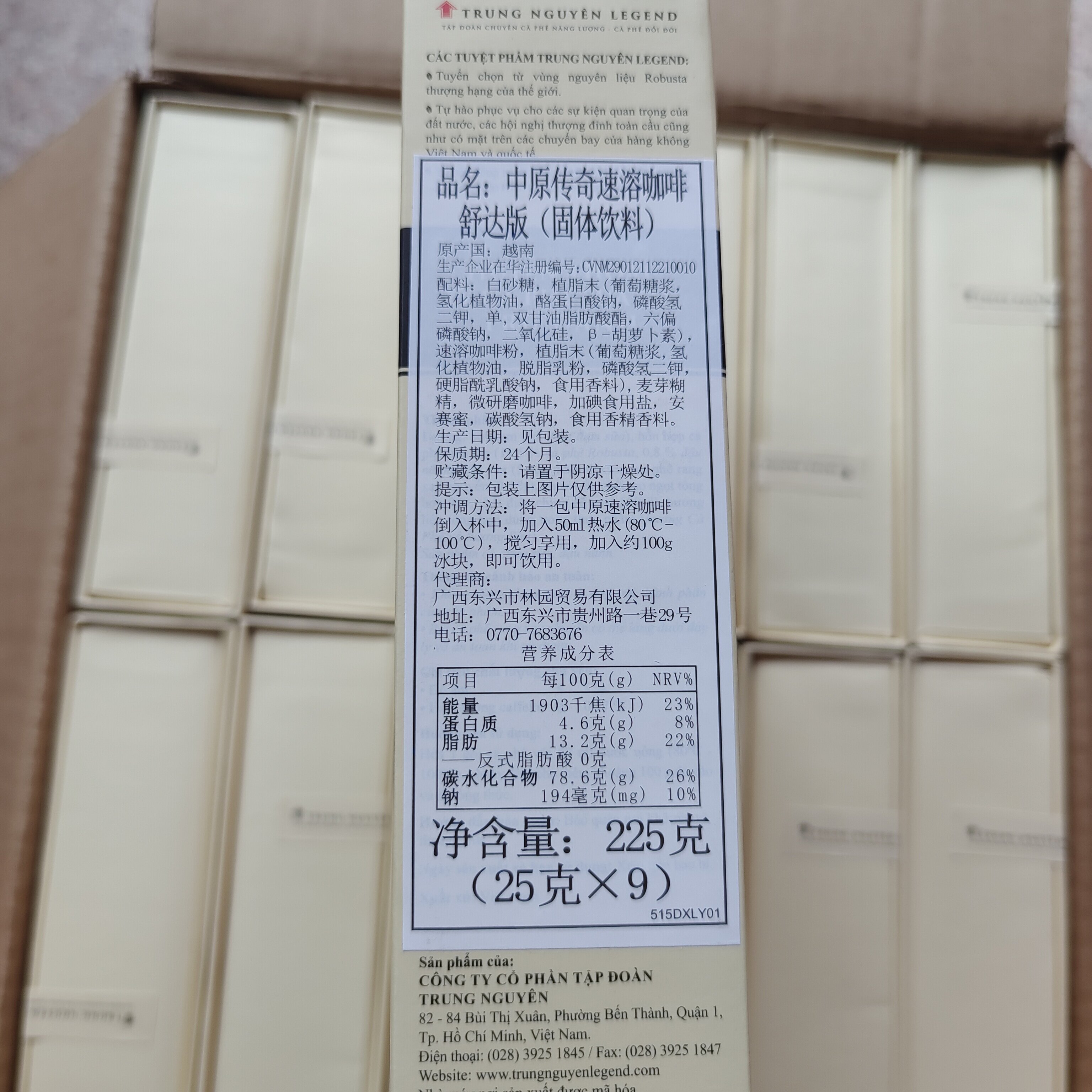 包邮 现货越南正品 9条X25g 版 中原舒达特浓速溶三合一咖啡225克经典