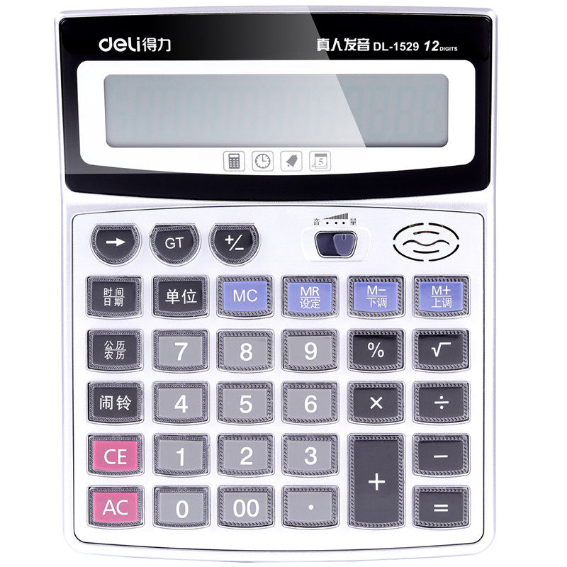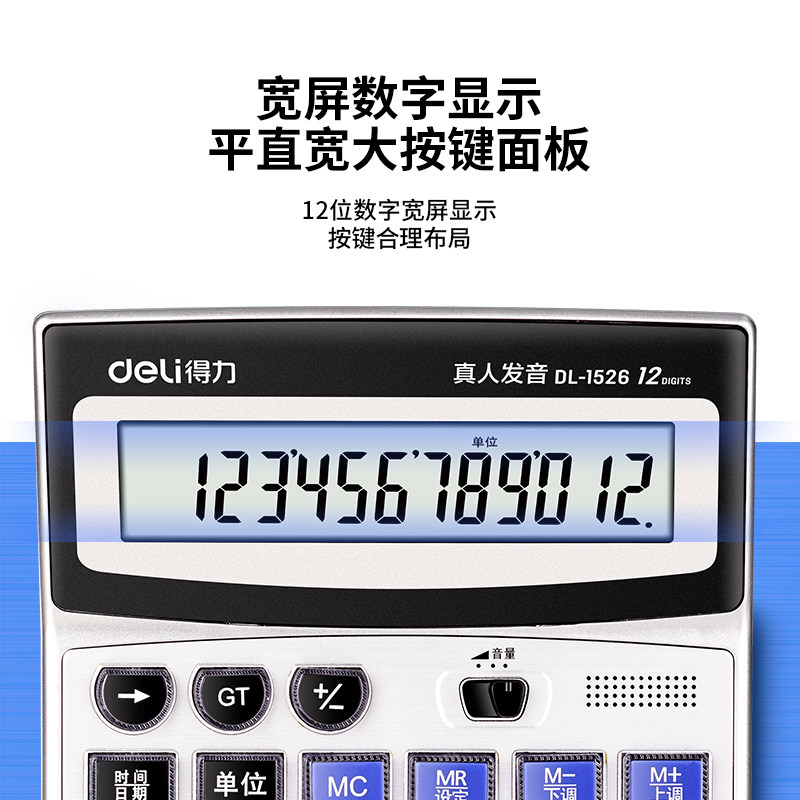 带电池语音办公财务用品多功能计算机12位数大屏幕 12位数大屏幕 得力1529语音计算器 水晶大按键计算机