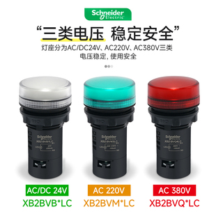 施耐德按钮指示灯LED绿色信号灯XB2BVB3LC VM4LC红色蓝白黄AC220V