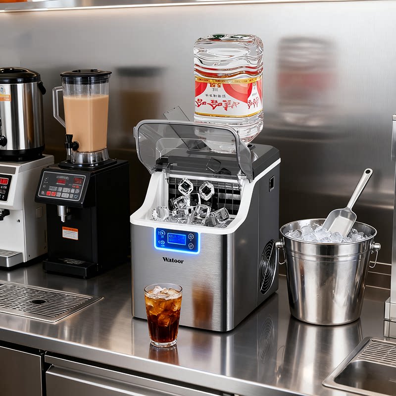 沃拓莱25kg制冰机商用小型奶茶店自动家用吧台式 酒吧方冰块制作机