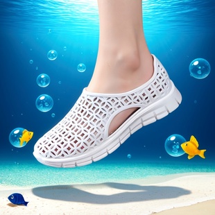 厚底增高防滑海边沙滩鞋 洞洞鞋 外穿2025新款 夏季 包头凉拖女士 女款