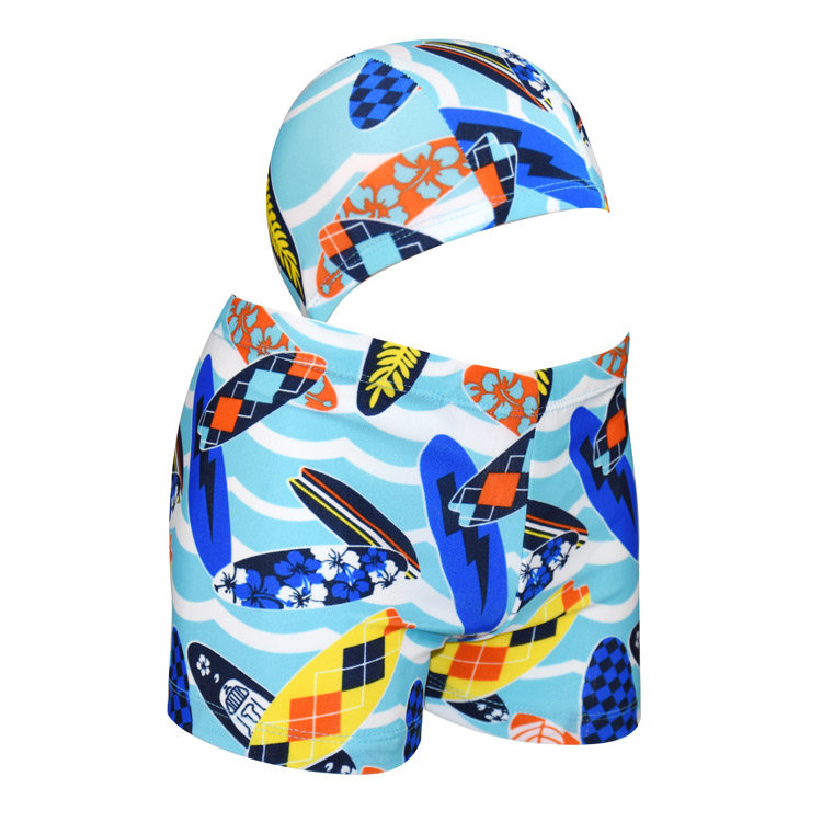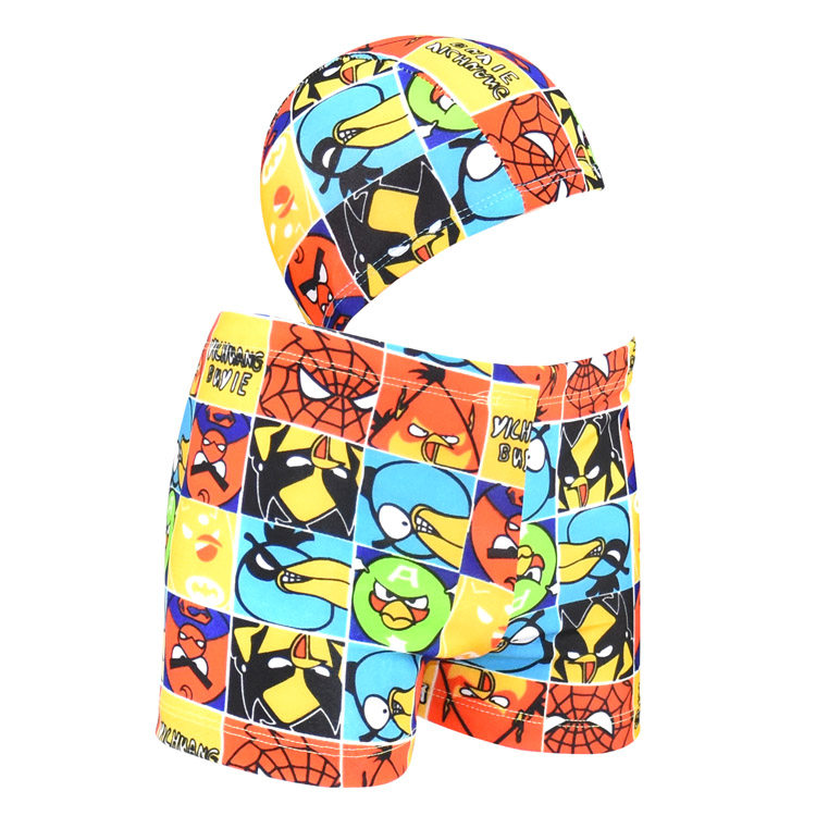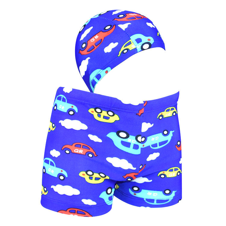 分体游泳衣小孩宝宝中小儿童平角游泳裤 批发卡通泳帽儿童泳裤 套装
