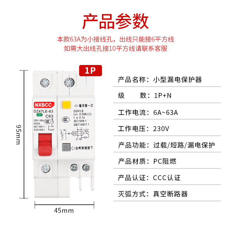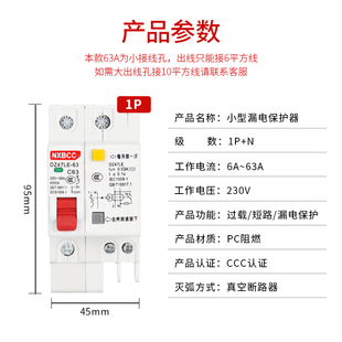 N空开带漏电漏保家用空气开关漏电保护器2P 63A1P 工厂促销 DZ47LE