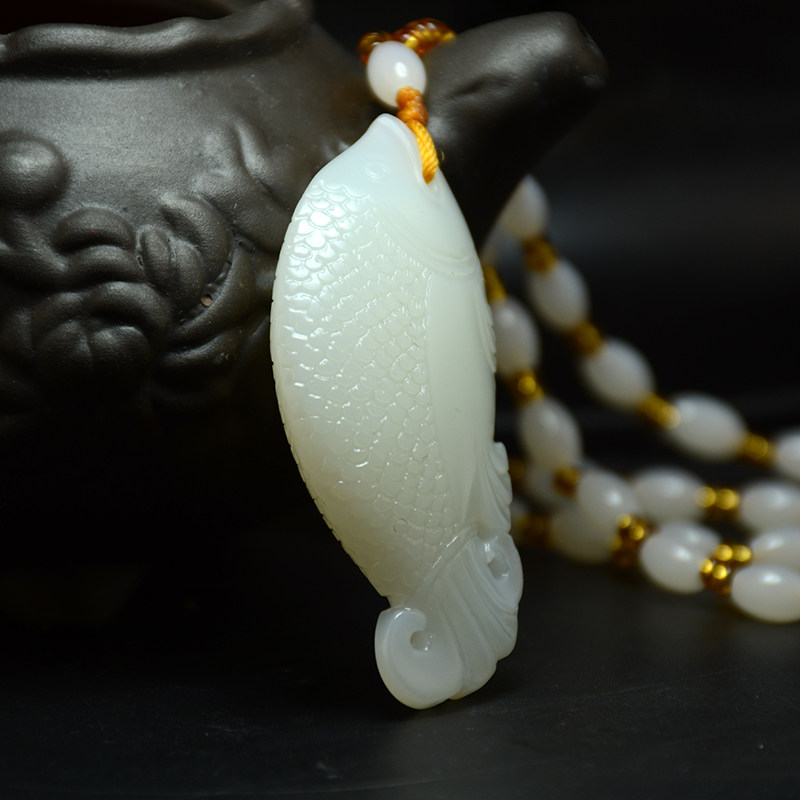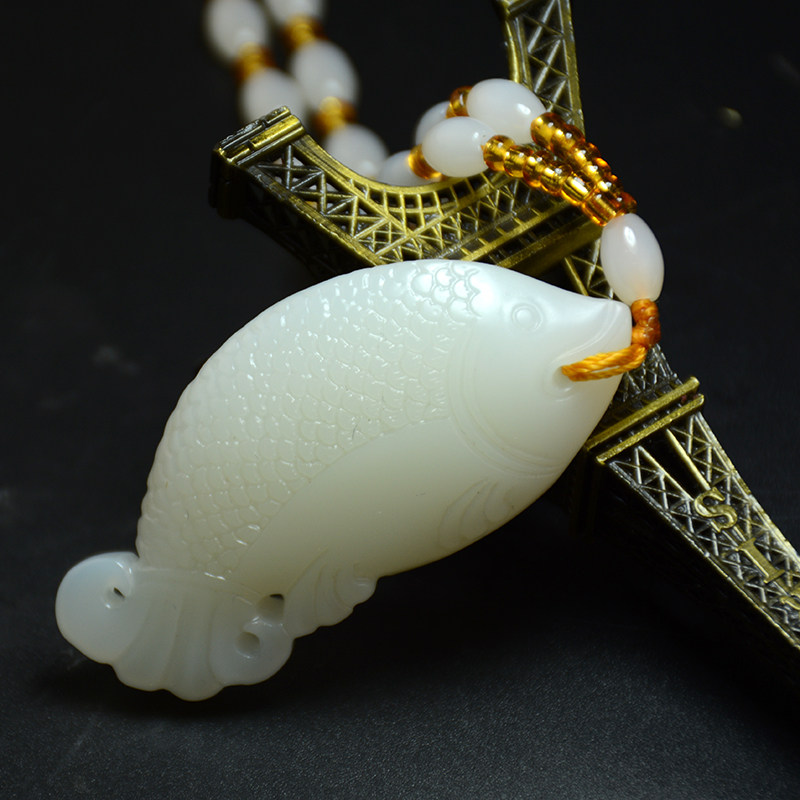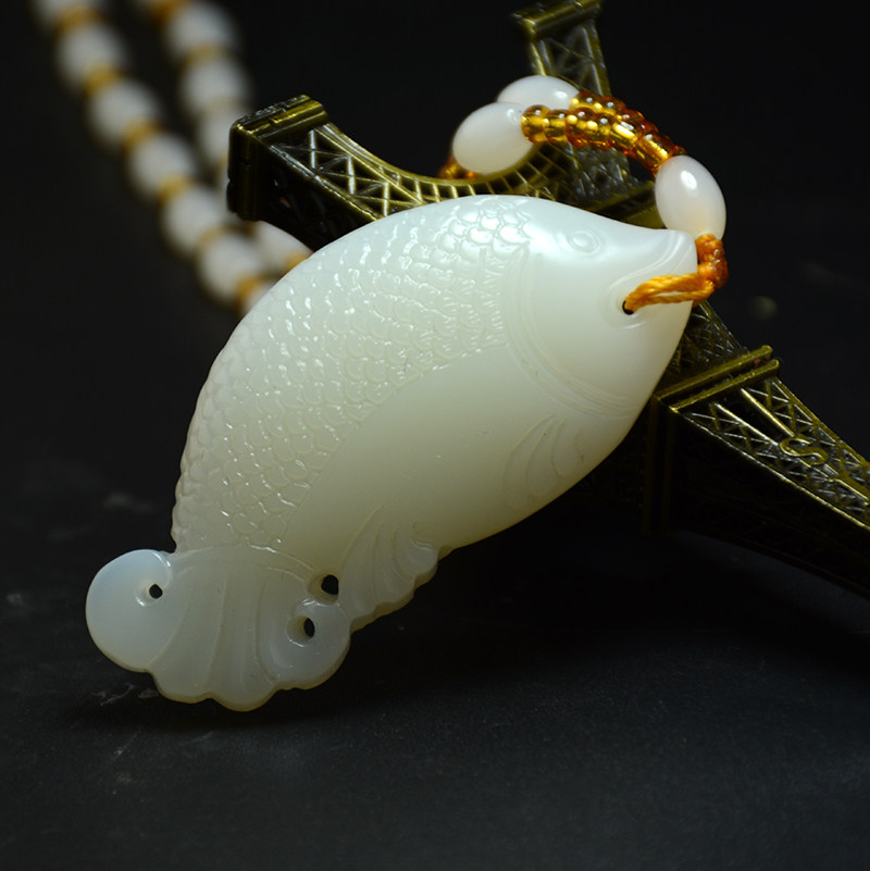 新疆和田玉鱼吊坠籽料羊脂白玉鱼挂件手把件玉坠玉鱼项链毛衣链