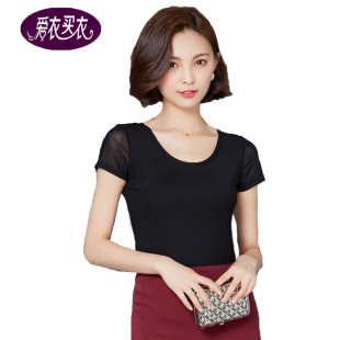 纱衣体恤薄款 百搭冰丝网纱打底衫 圆领半袖 女t恤修身 女夏2022短袖