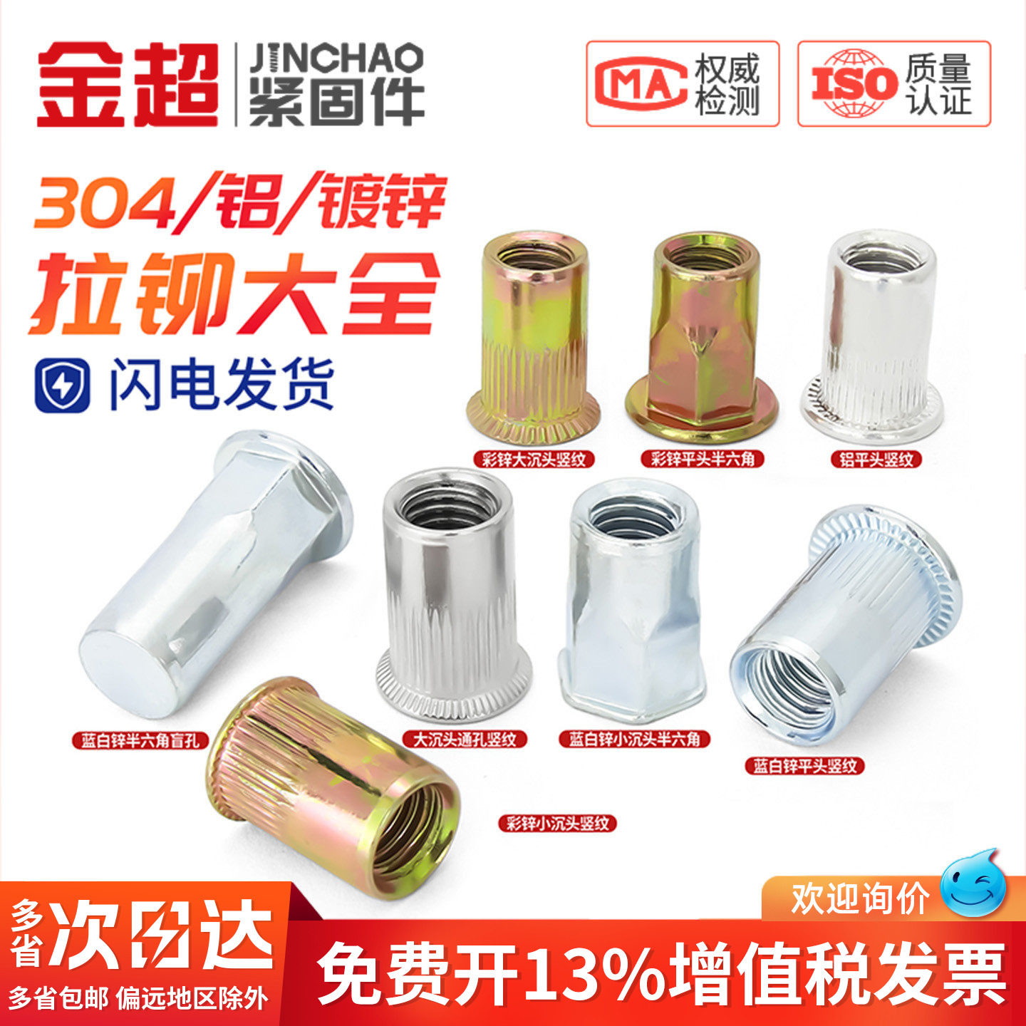 304不锈钢拉铆螺母铝制平头拉帽沉头拉卯柳螺母大全M3M4M5M6M8M10