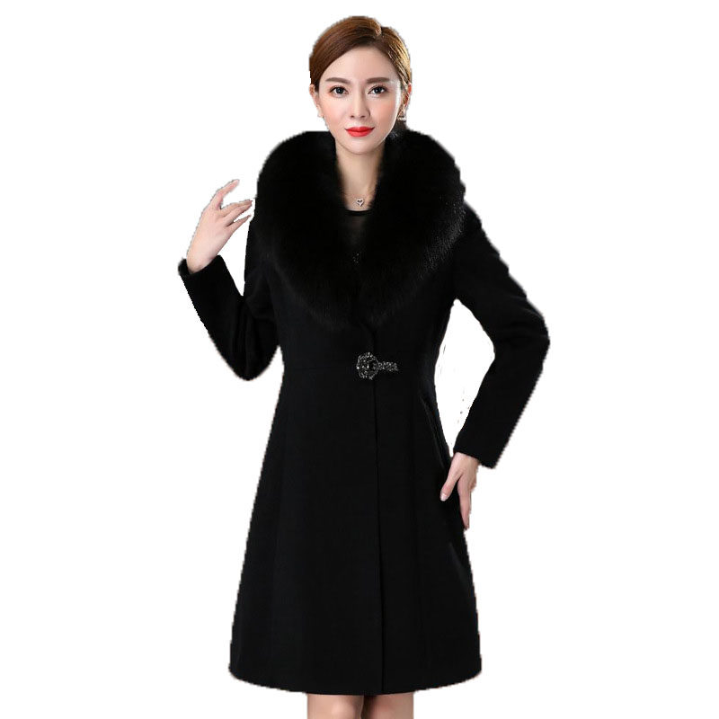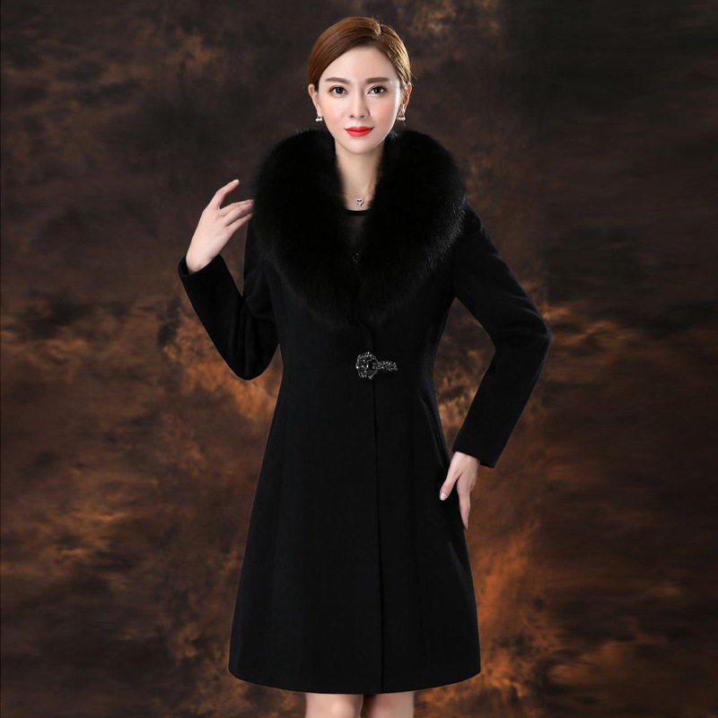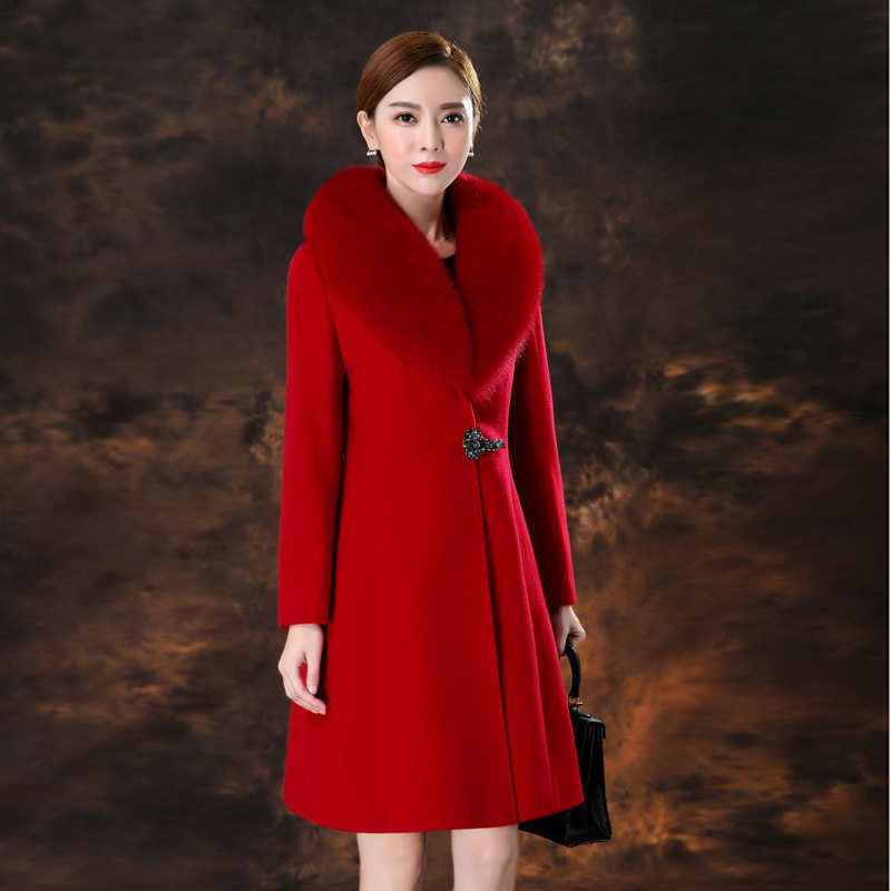 显瘦高端羊毛呢外套 小个子修身 秋冬款 狐狸毛领羊绒大衣女中长款