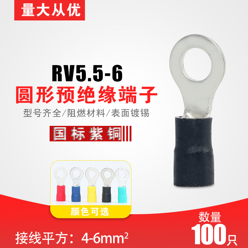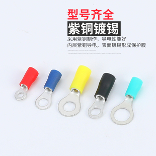 连接器RV6 RV5.5 6紫铜O型圆形预绝缘冷压接线端子铜鼻子铜线耳