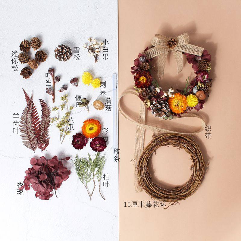 圣诞DIY干花永生花混合花环材料包自制Zakka藤编花环2030厘米2024