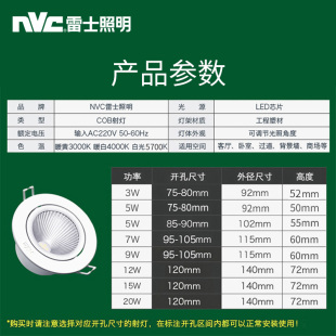 雷士照明cob射灯嵌入式 led牛眼天花防眩筒灯店铺商用背景墙无主灯