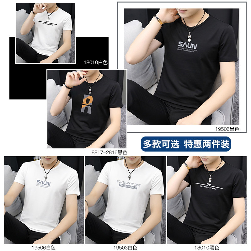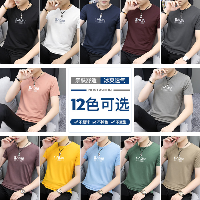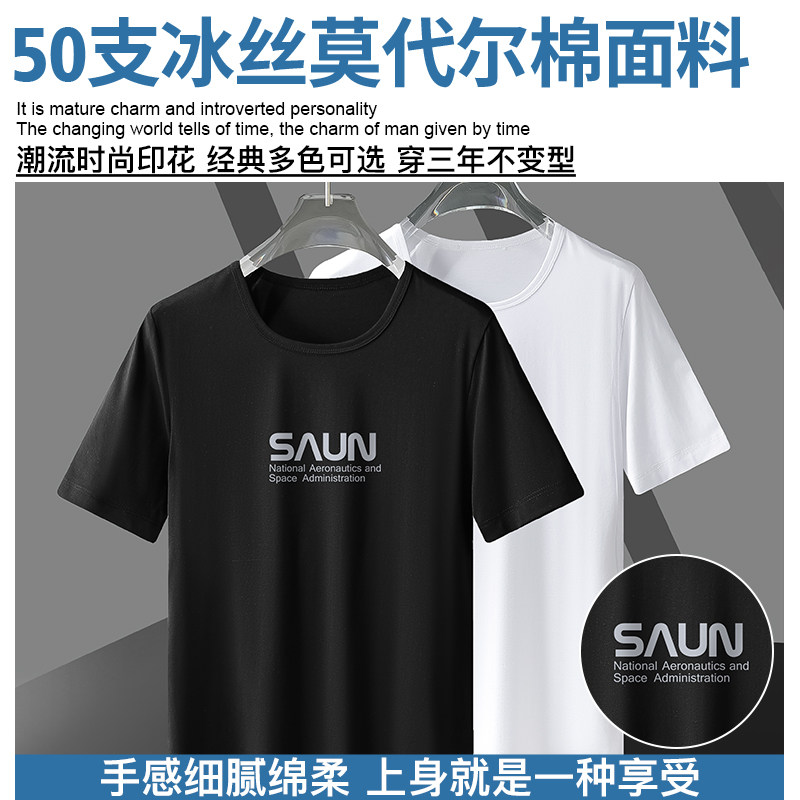 冰丝印花半袖 t恤男潮流潮牌黑色圆领上衣夏季 莫代尔短袖 2026新款