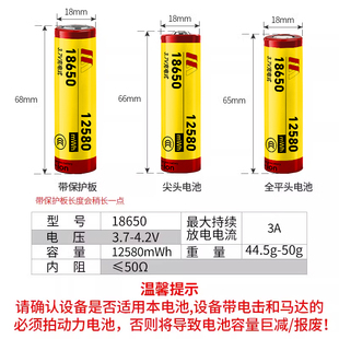 18650锂电池充电动力大容量3.7V强光手电筒平头灯收音机4.2伏电芯