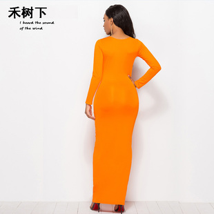 Women Elastic Dresses Slim Dress紧身长裙 Casual Maxi Bodycon