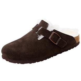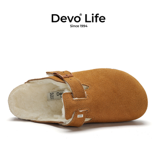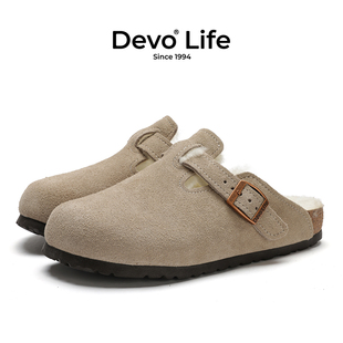 厚底博肯懒人鞋 男女真牛皮毛毛鞋 包头拖一脚蹬 加绒软木勃肯鞋 大码