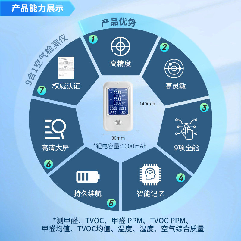 绿驰9合1甲醛检测仪家用室内专业甲醛测试盒检测仪器测甲醛