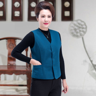 女士百搭修身 马夾妈妈装 背心奶奶坎肩 短版 中老年马甲女春秋薄款