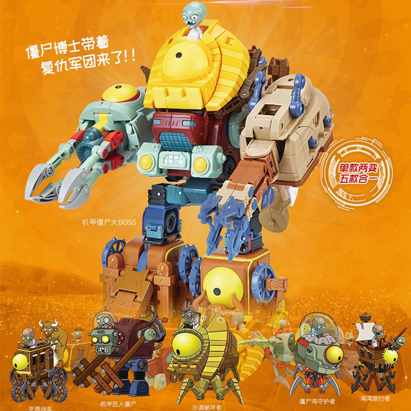 正版 植物大战僵尸2复仇军团儿童玩具变形机器人巨人僵尸王博士