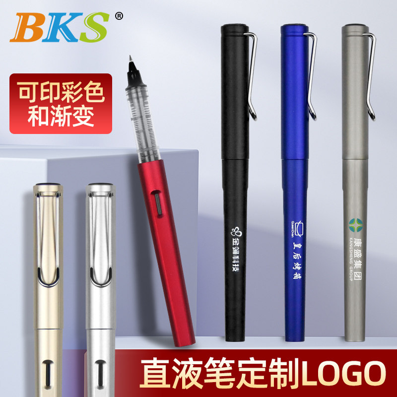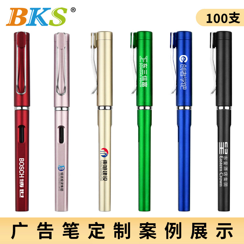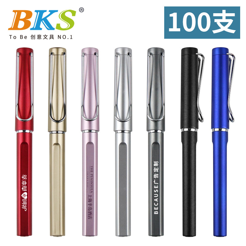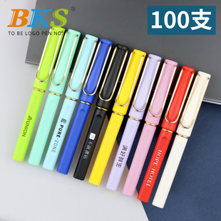 100支 钢丝笔夹水笔公司品牌推广宣传商务办公签字笔批发 BKS可视笔 广告笔定制logo可印刷订做中性笔
