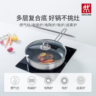 德国双立人不锈钢28cm煎锅牛排锅厨房电磁炉燃气平底锅不粘锅锅具
