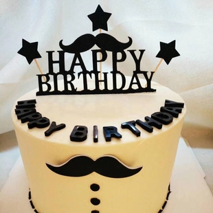 饰双面泡沫小胡子插卡 生日蛋糕装 12个装 黑胡子烘焙插牌父亲节男士