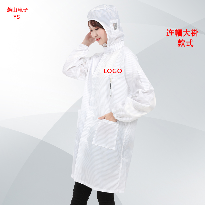 静电衣长款 工作服带帽无尘大褂电子厂蓝白色防尘衣男女食品厂防护