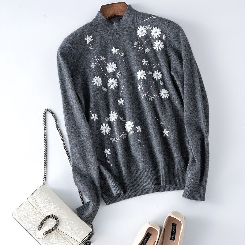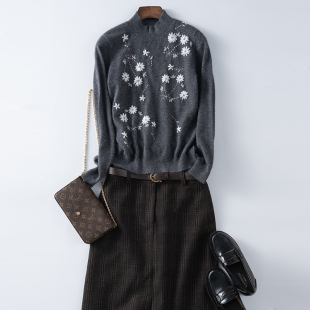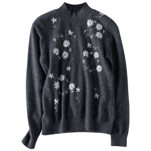 针织半高领套毛衣 花山羊衫 2024秋冬新款 女士打底重磅推出纯手工袖