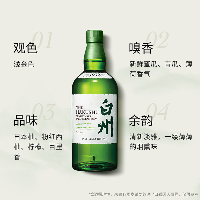 宾三得利白州1973单一麦芽威士忌700ml 波摩12雪莉桶梅酒组合送礼