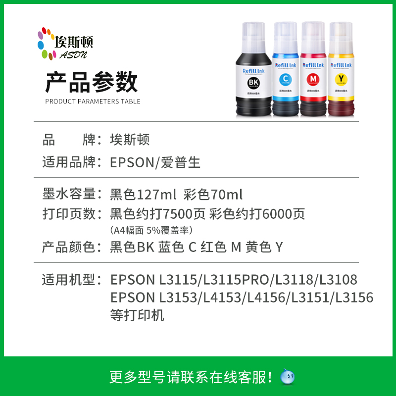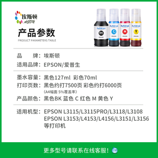 爱普生009墨水L15158 L15168 黑色彩色非原装 顺丰 颜料四色通用 墨仓式 适用EPSON L6578打印机补充装 L6558