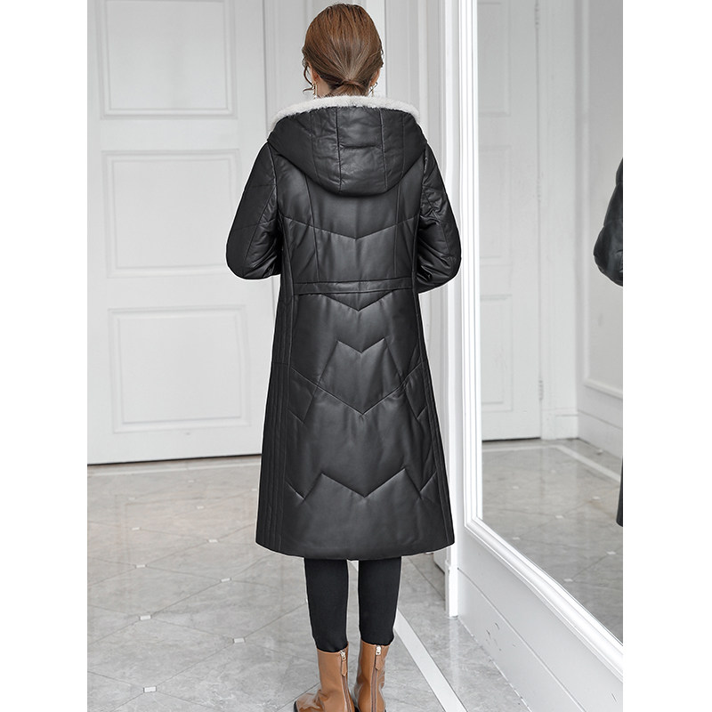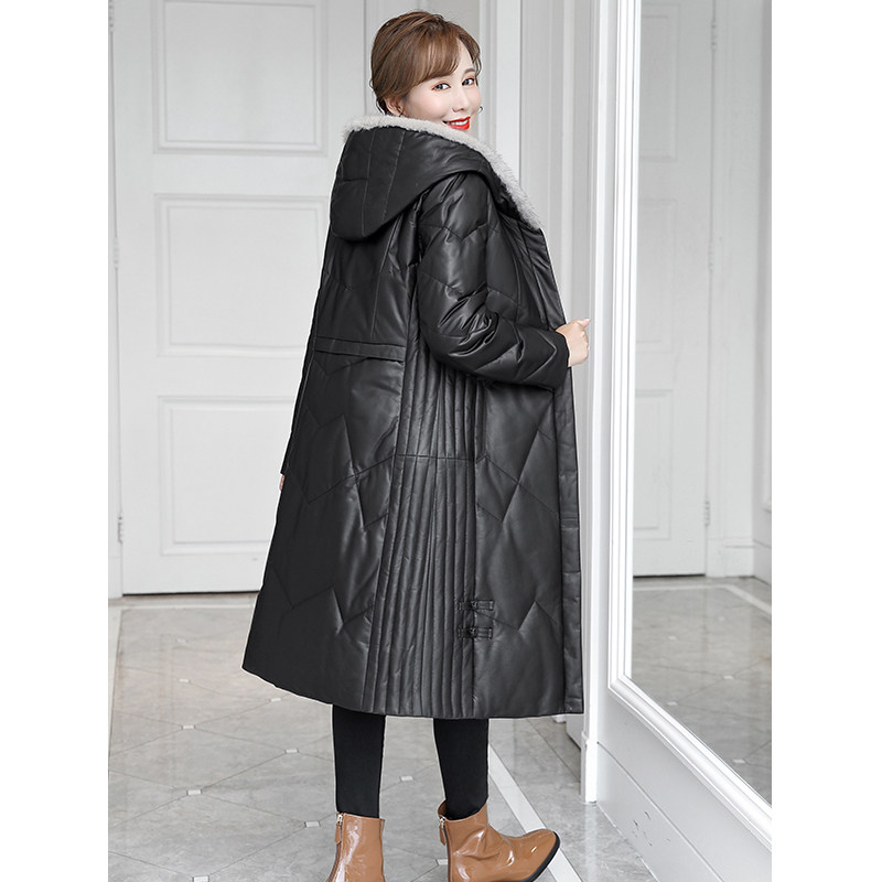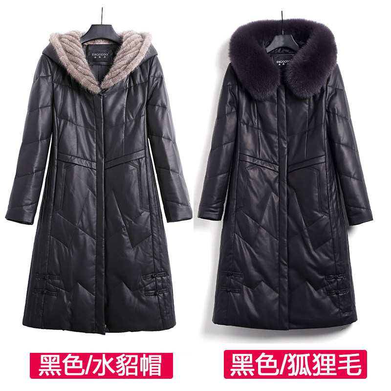 绵羊皮水貂编织帽皮草羽绒服大码 真皮皮衣女士中长款 厚 特价