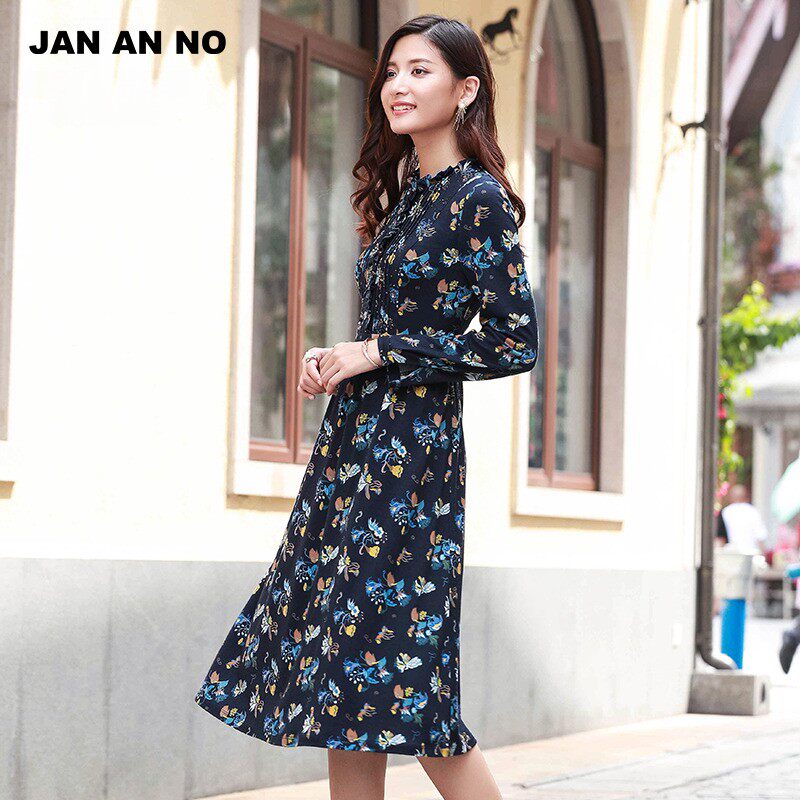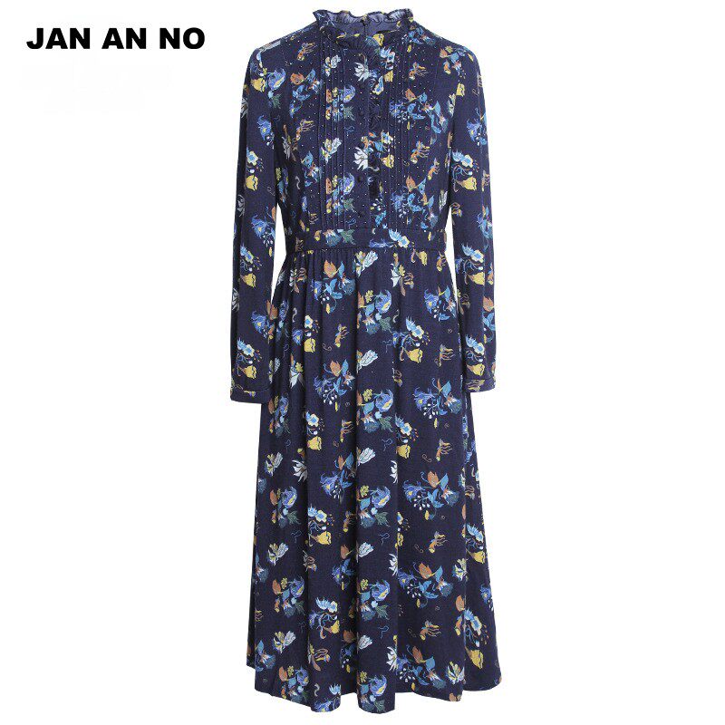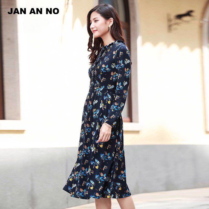 大码 NO简爱诺秋冬款 复古羊毛印花高腰散摆连衣裙J860249LQ JAN