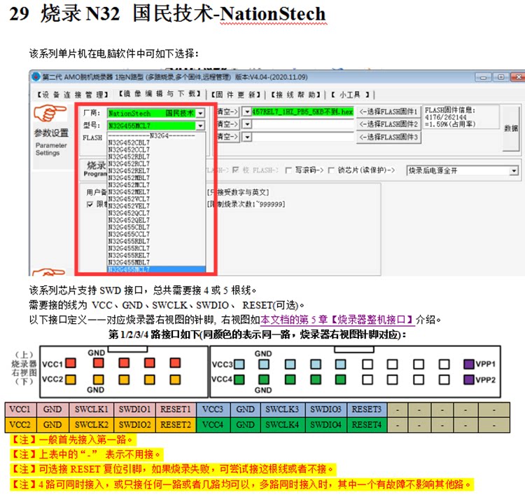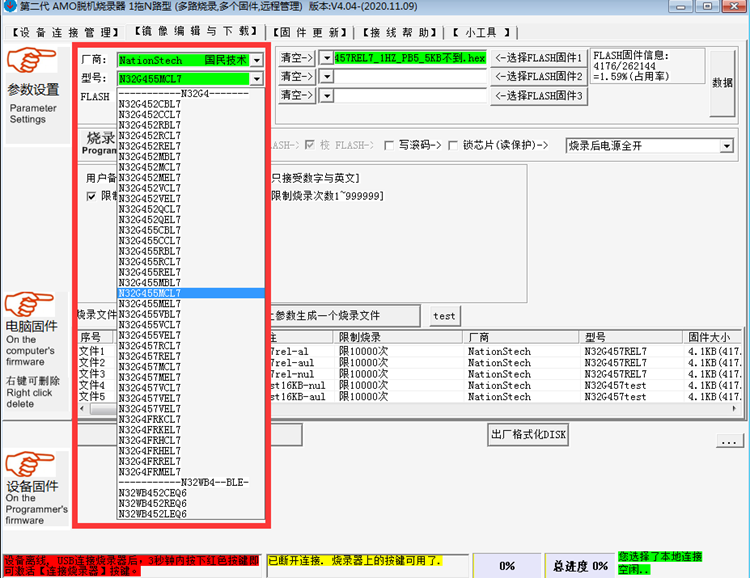 1拖4路 国民技术N32下载器N32G457 030脱机烧录器 G032 K204 G430
