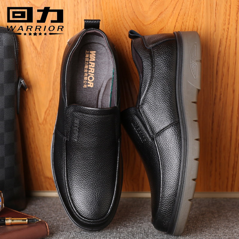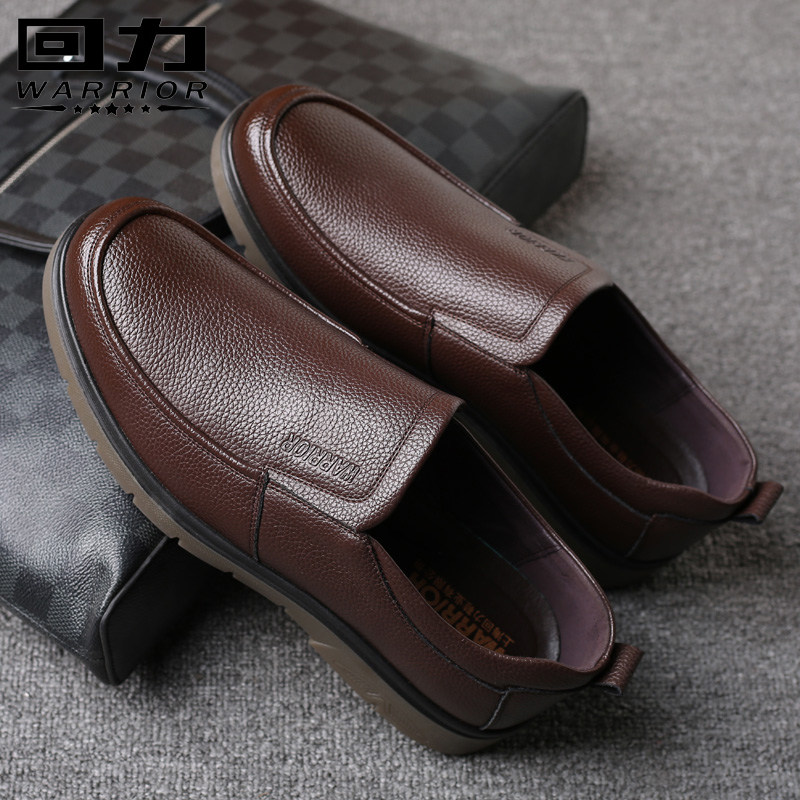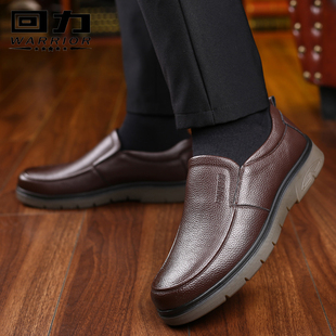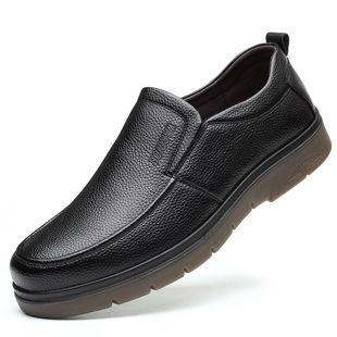 秋冬新款 子男中年爸爸鞋 休闲皮鞋 软底一脚蹬真皮鞋 男士 红蜻蜓男鞋