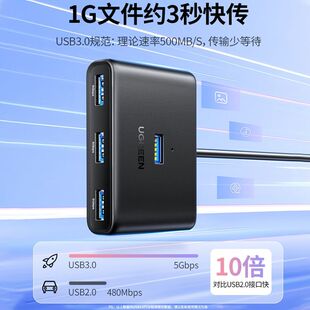 四笔记本usb插头多口 三 绿联usb分线器2.0 3.0转接器集线扩展器长线hub电脑配件usb多接口typec拓展坞一拖二