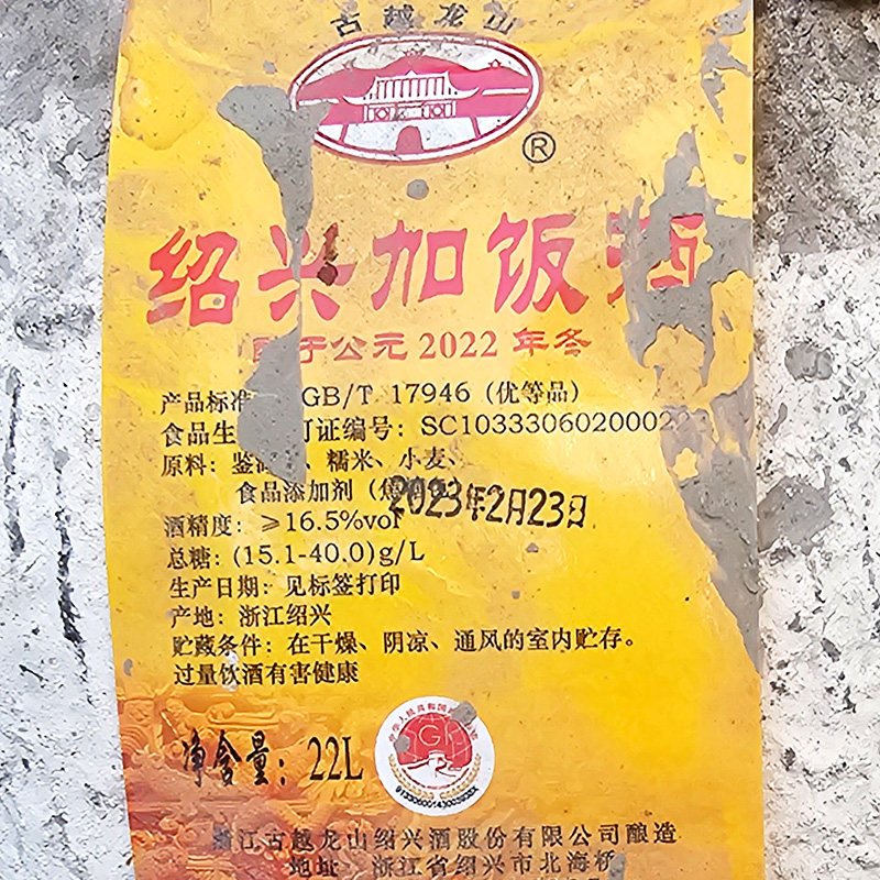 花雕糯米加饭22KG大坛 黄酒 古越龙山绍兴黄酒 2022年冬酿原酒坛装