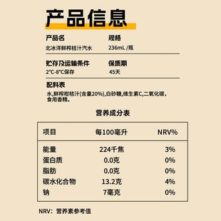 北冰洋玻璃瓶鲜榨桔汁汽水果汁含量20%饮品鲜果压榨饮料236ml