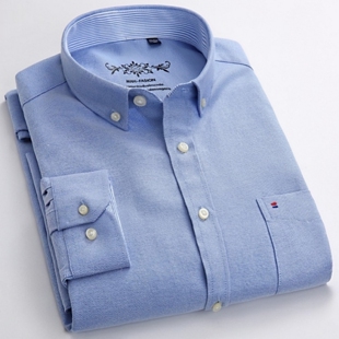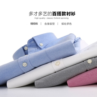 纯色商务休闲潮流帅气青年修身 朗蒙春季 男长袖 牛津纺衬衫 衬衣 新品
