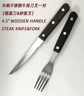 欧贸木柄复古不锈钢牛扒刀叉牛排刀多款 四齿叉SteakKnife&Fork